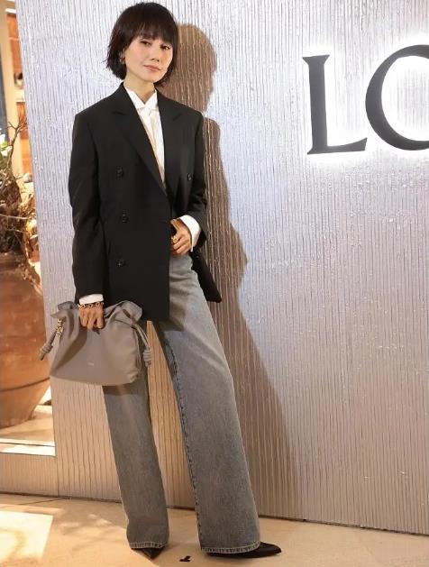 再说说黑色西装外套配休闲牛仔裤,这可是袁泉的拿手好戏。黑色西装外套,谁衣柜里没有几件啊?但穿不好就像卖保险的。袁泉就聪明了,随便搭条阔腿牛仔裤,就打造出随性又不失优雅的运动风。想更街头点,加个棒球帽就行了。牛仔裤颜色越浅,韩系风格就越明显。袁泉这套呢,御姐感十足,黑色尖头高跟鞋一穿,成熟女性的魅力挡都挡不住。